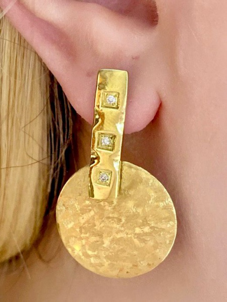 • Brinco em Ouro Amarelo 18Kt  Fosco com detalhe polido e aplique de brilhantes - Medida:3,50Cm - Peso:8,40GR