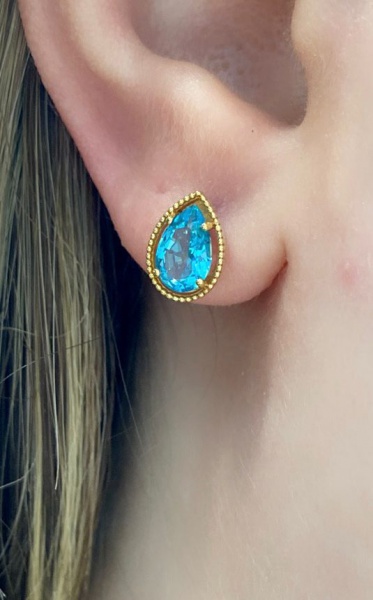 • Brinco em Ouro amarelo 18kt com topázio Forma de gota, Medindo 0,7x1,0cm - Peso:2,0Gr
