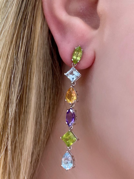 • Brinco Tripo Rainbow em Ouro Branco 18Kt com gemas diversas, Comprimento 5,50Cm , Peso:8,70GR