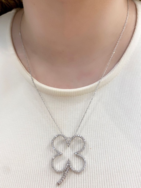 • Colar em Ouro Branco 18Kt Com pendente Folha Cravejado de brilhantes - Medida:50Cm - Peso:6,50GR